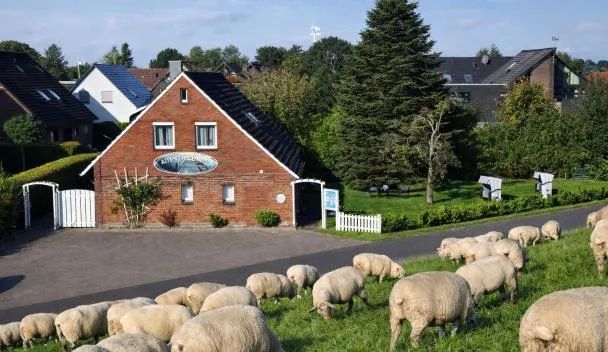 Niedersachsen bölgesindeki Horumersiel noktasında, Schillig Plajı noktasına 2,8 km mesafede bulunan Gasthaus Deichkieker - Wo die Nordsee dich umarmt und Erholung beginnt tesisi ücretsiz WiFi, çocuk...