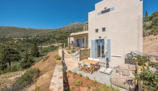 Nhìn ra núi, Cantera house, Kalokairines KIT cung cấp chỗ nghỉ có sân hiên và sân trong, cách Loutro tis Afroditis khoảng 17 km.