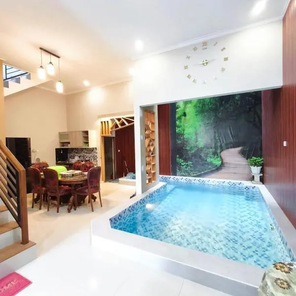 1BR Private Pool Villa in Batu, Malang - Omah Susi se nachází v destinaci Punten a nabízí volný vstup do krytého bazénu. Batu Town Square BATOS se nachází 3,4 km odtud.