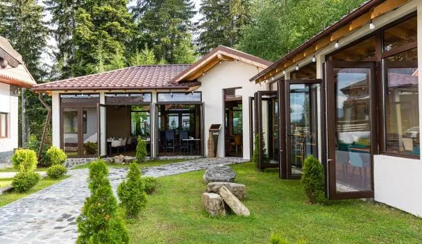 Die Unterkunft Vila Maria Rustic Predeal, die in Predeal gelegen ist, bietet Bergblick sowie ein Restaurant, eine Gemeinschaftsküche, eine Bar, einen Garten, eine Terrasse und einen Kinderspielplatz.
