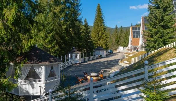 Ten pięciogwiazdkowy hotel oferuje centrum spa, kryty basen, saunę i siłownię. Znajduje się on w ośrodku narciarskim Bukovel w Karpatach.