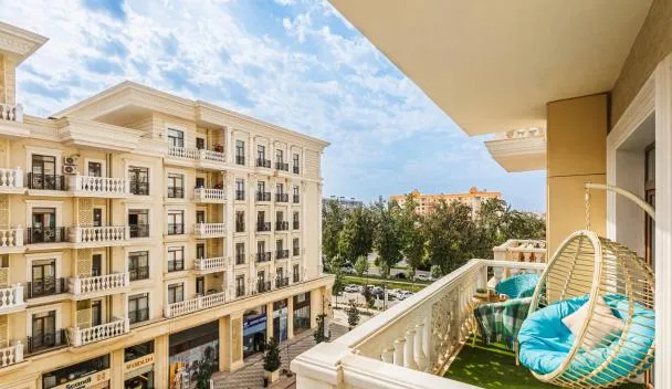 Gelegen in Taschkent, bietet die Unterkunft Boulevard Tashkent City 02 klimatisierte Übernachtungsmöglichkeiten mit einem Balkon und kostenlosem WLAN. Die Unterkunft hat Gartenblick.