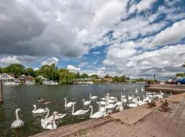 Die Unterkunft Serene spacious room (double) in gorgeous bungalow on river near Thorpe park and Holloway University Egham verfügt über Flussblick und Übernachtungsmöglichkeiten mit einem Garten und...