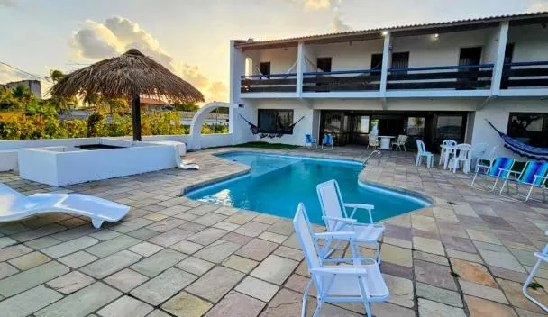 Nhìn ra hồ bơi, @BeachHouseItamaraca cung cấp chỗ nghỉ có hồ bơi ngoài trời, khu vực bãi biển riêng và phòng chờ chung, cách Bãi biển Forte Orange Beach khoảng 12 phút đi bộ.