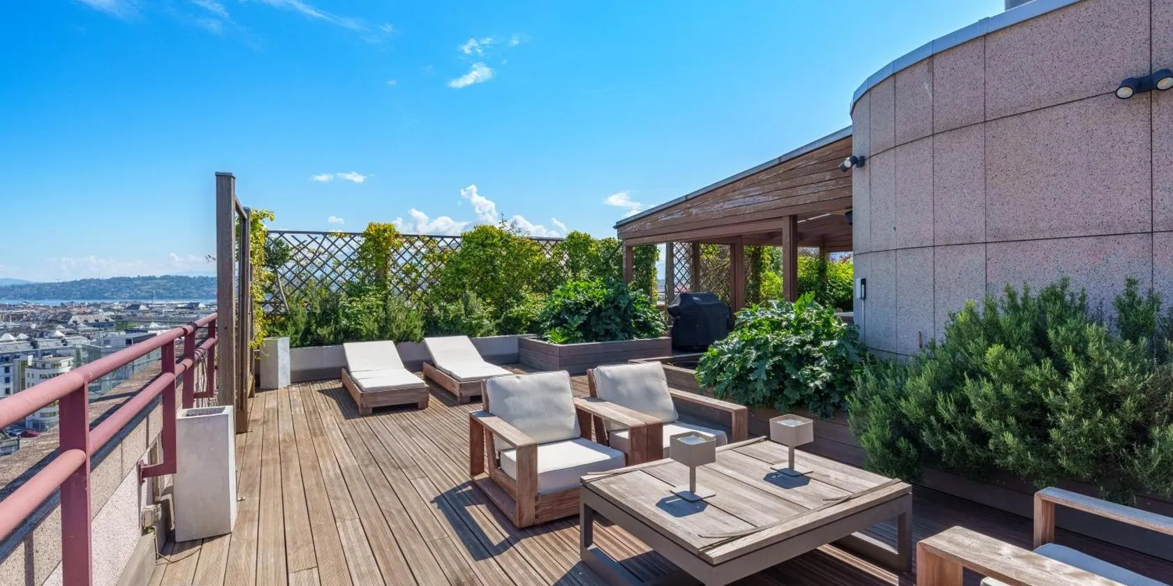 This elegant 5-star hotel is located on Geneva’s waterfront promenade, offering spectacular views of Lake Geneva, Mont Blanc and the Alps. It features a luxurious spa and an outdoor pool.