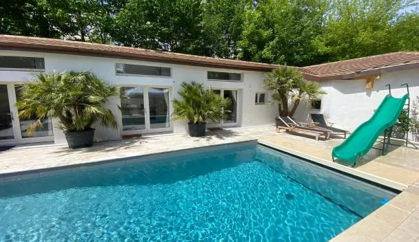 Apresentando uma piscina exterior, um jardim e um terraço, Chalet de TARA - Grand appartement esprit chalet - piscine chauffée - Genève dispõe de acomodações em Collonges-sous-Salève com acesso Wi-Fi...