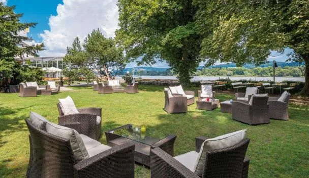 Located on the Petersberg Hill, this grand 5-star hotel boasts wonderful views of the Siebengebirge Hills and the River Rhine. It offers fine cuisine.