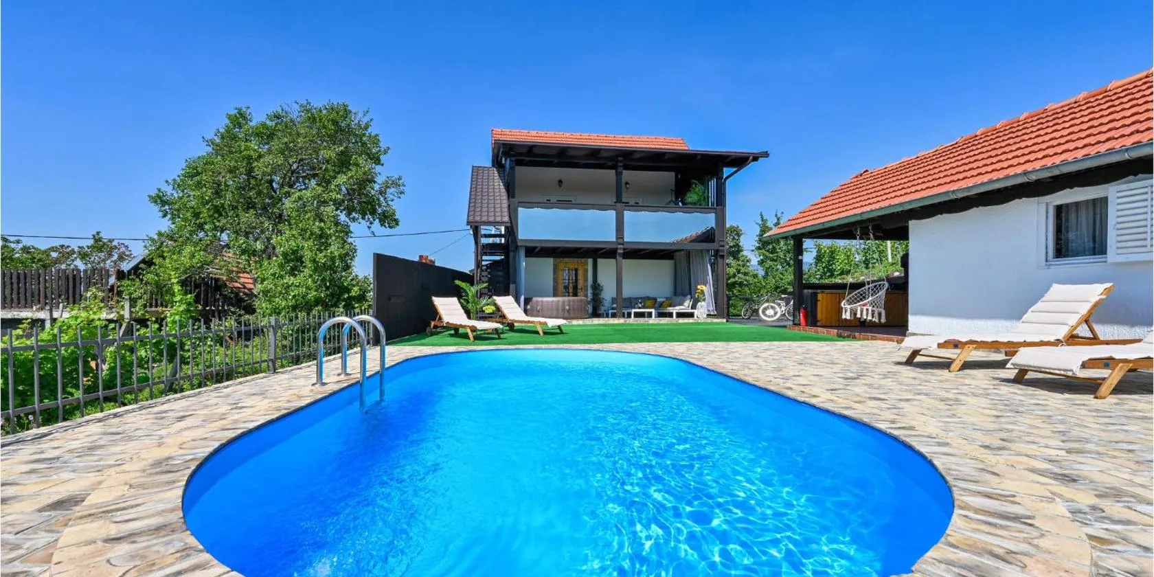 Vila s bazenom deluxe - GTI se nachází v Záhřebu a může se pochlubit terasou s výhledem na bazén a do zahrady. Těšit se můžete také na celoročně otevřený venkovní bazén, saunu a vířivku.