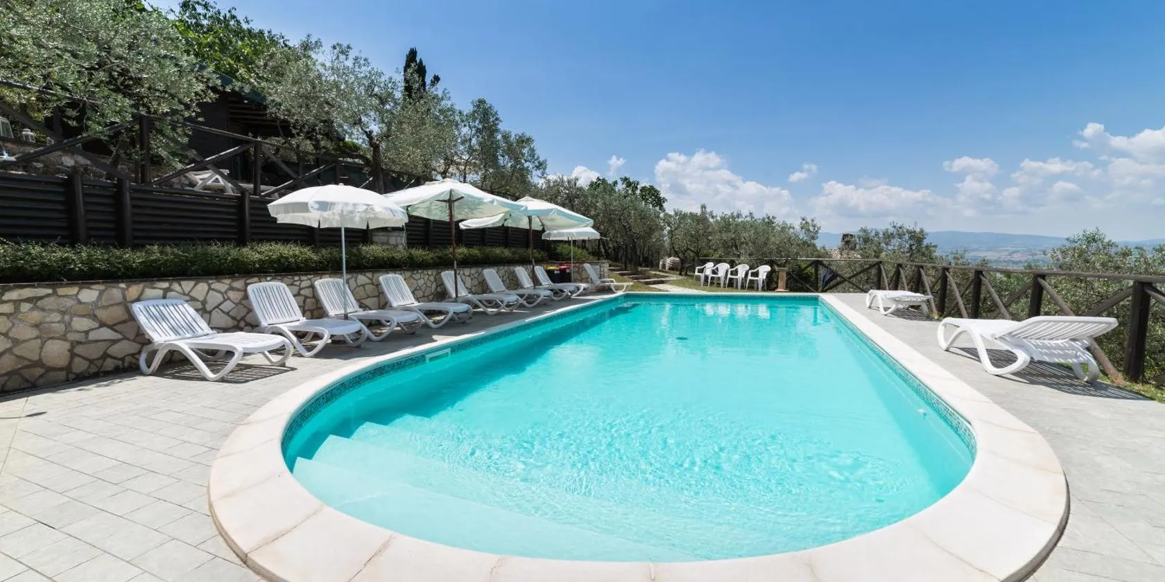 Country House Trevi Umbria Borghetto Vetuliae предлага изглед към басейна и помещения за настаняване с балкон, на около 32 километра от жп гара Асизи.