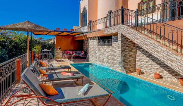 Boasting air-conditioned accommodation with a private pool, garden view and a balcony, Tamraght Sunny apartment is situated in Tamraght Ouzdar.