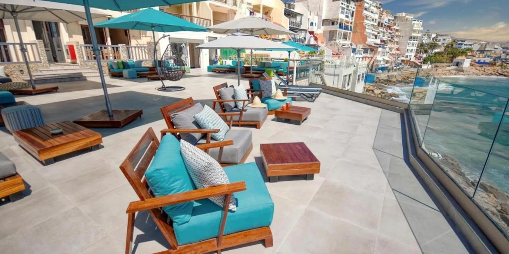 海の景色を望むLuxury 2BR Apartment Taghazout Bay 1 min walk to beachはテラスとバルコニーを提供する宿泊施設で、ゴルフ・ターゼグゾまで約徒歩17分です。タガズート・ビーチから2.2kmの宿泊施設で、屋外プールと無料専用駐車場を提供しています。
