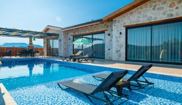 VİLLA ÇAPA está ubicado en Kaş y ofrece alojamiento con wifi gratis, pileta, zona de playa privada, salón compartido y vistas al mar.