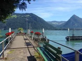 Seehüsli near Interlaken, Grindelwald and Lauterbrunnen位于Därligen,配备带免费WiFi的池景客房,配有季节性室外泳池、花园和私家海滩。这家住宿提供私人泳池和免费私人停车位。...