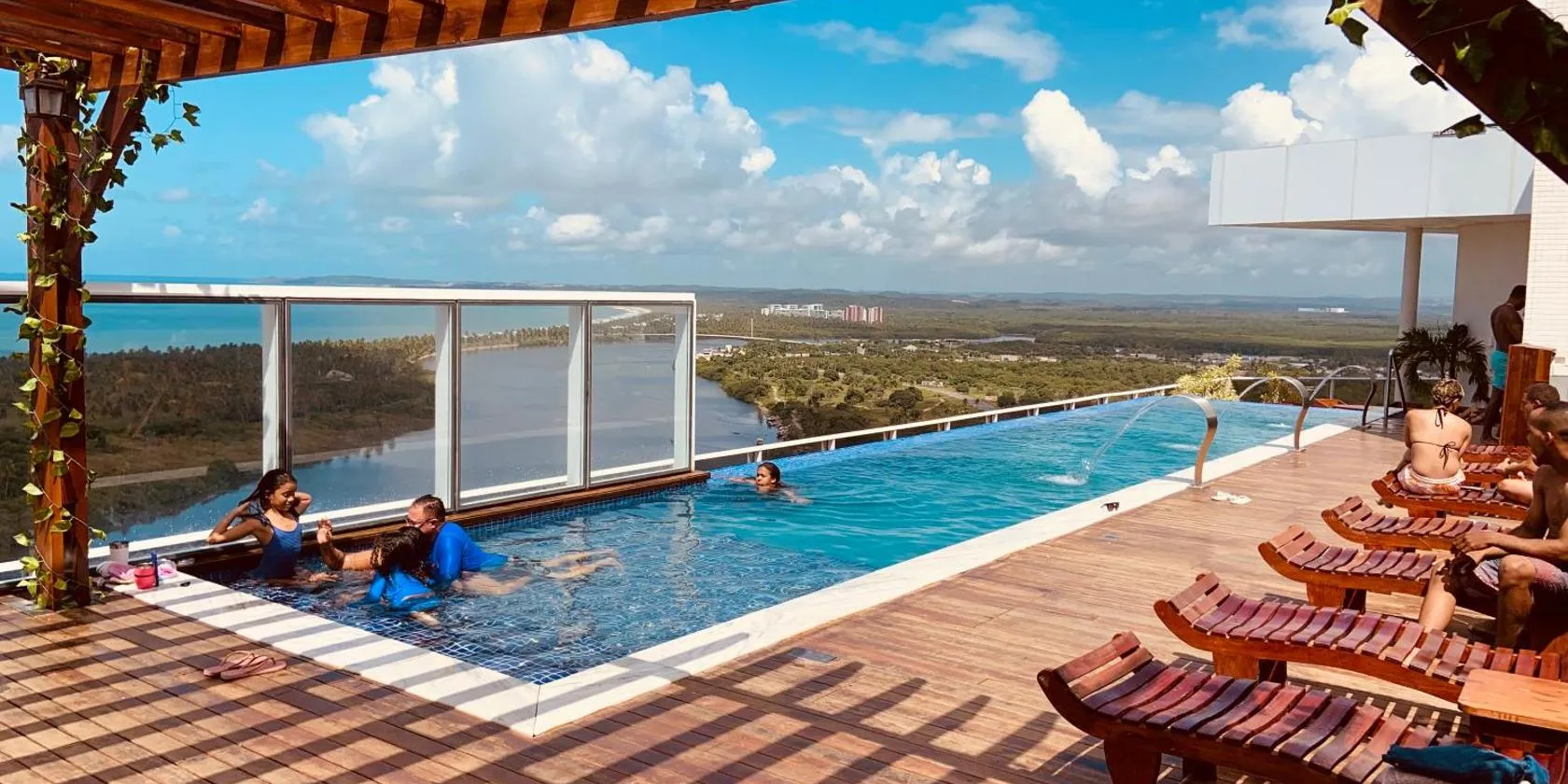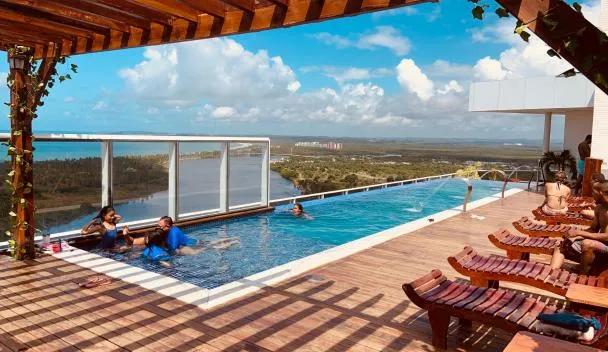 Gelegen in Recife, bietet die Unterkunft Flat em Boa Viagem Rooftop 470 Conforto e Localização privilegiada eine Terrasse mit Stadtblick und Meerblick sowie einen ganzjährig geöffneten Außenpool,...