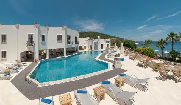 Menampilkan pantai berpasir di sepanjang Laut Aegea, desa liburan all-inclusive ini berjarak sekitar 6 km dari Bodrum.