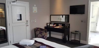 The room was spotlessly clean and beautifully furnished and decorated. Bathroom spotless and fully functional. The food was tasty and served hot. Good choices. Service throughout the hotel was excellent...nothing too much trouble. All staff were welcoming. The manager was always about and interracted with all customers. Entertainments was fantastic. Excellent value for money. The hotel is back in the hands of The Taylor Family again!!