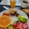 SverigeBra frukost med fantastisk utsikt. tillräckligt varierat även för min gluten intolleranta dotter. takterrassen en enorm bonus med utsikt över hela staden. Nära tunnelbana och alla sevärdheter. Kylskåp på rummet bonus.