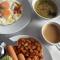 Очень хороший завтрак со свежей выпечкой. Чисто.