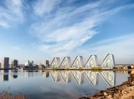 Com terraço, The Heart of Billund apartment by KIRIJA conta com acomodação em Billund com Wi-Fi grátis e vista para a cidade. A acomodação fornece jardim e estacionamento privativo grátis.