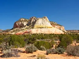 Bryce Glamp And Camp坐落于佳能威尔,享有山景,拥有免费WiFi和免费私人停车位,距离日出点有33公里。 每间房间都提供庭院、带冰箱的设施齐全的小厨房、壁炉、带沙发床休息区、平板电视以及带淋浴设施和免费洗浴用品的私人浴室。 客人可以在附近体验徒步。 这家露营地距离日落点有37公里,距离粉红色崖村有26公里。佩奇市机场距离住宿有115公里。