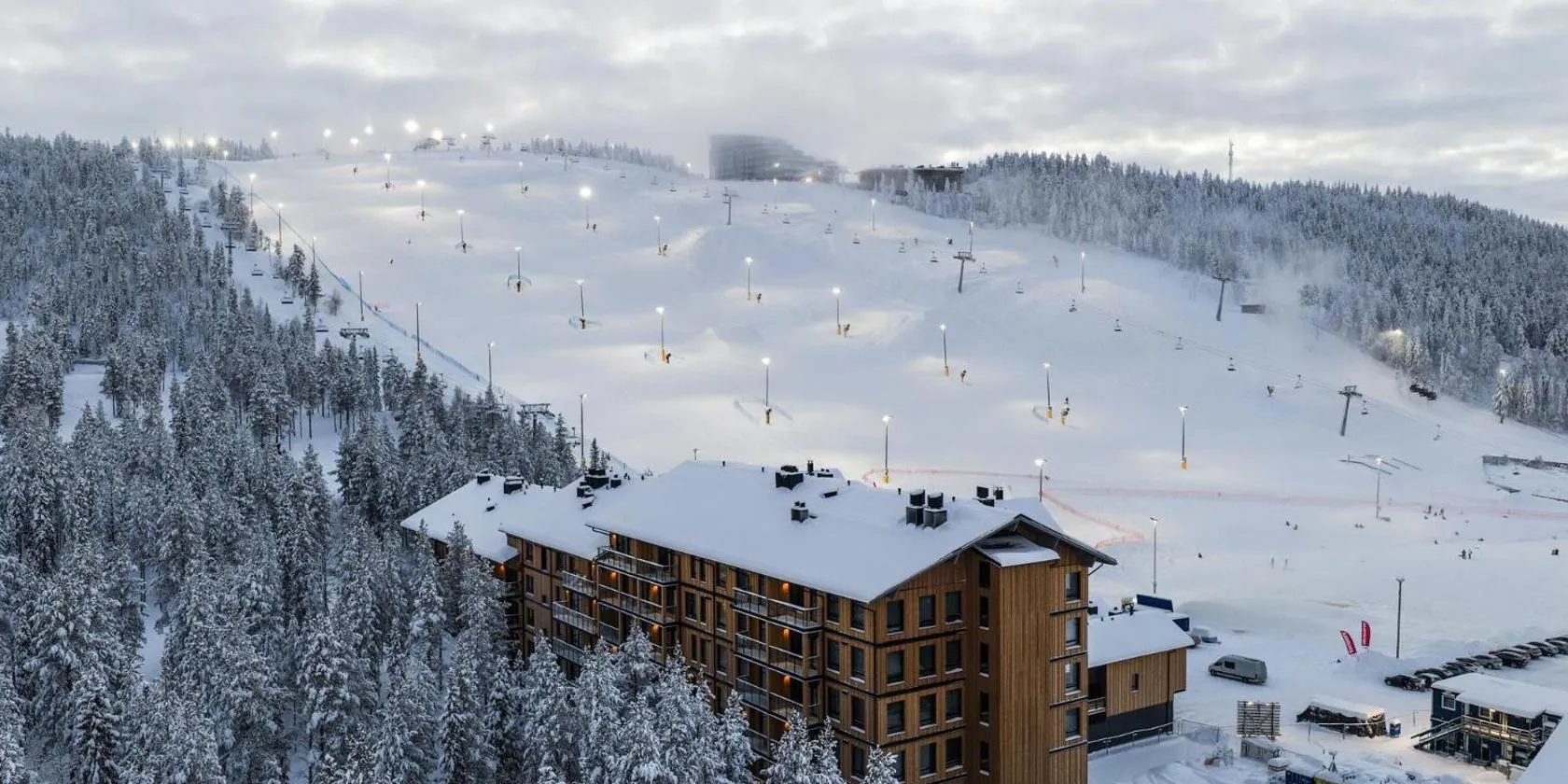 Located on the mountainside of Levi Fell, next to the Express Gondola Lift, this modern hotel offers ski-in ski-out accommodation.