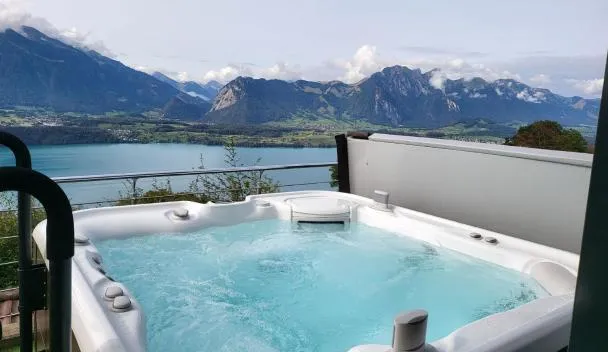 Dieses Hotel mit Panoramablick auf den Thunersee und die Schweizer Alpen begrüßt Sie 5 km von Spiez, eine 10-minütige Fahrt von Interlaken und 15 Minuten von Thun entfernt.
