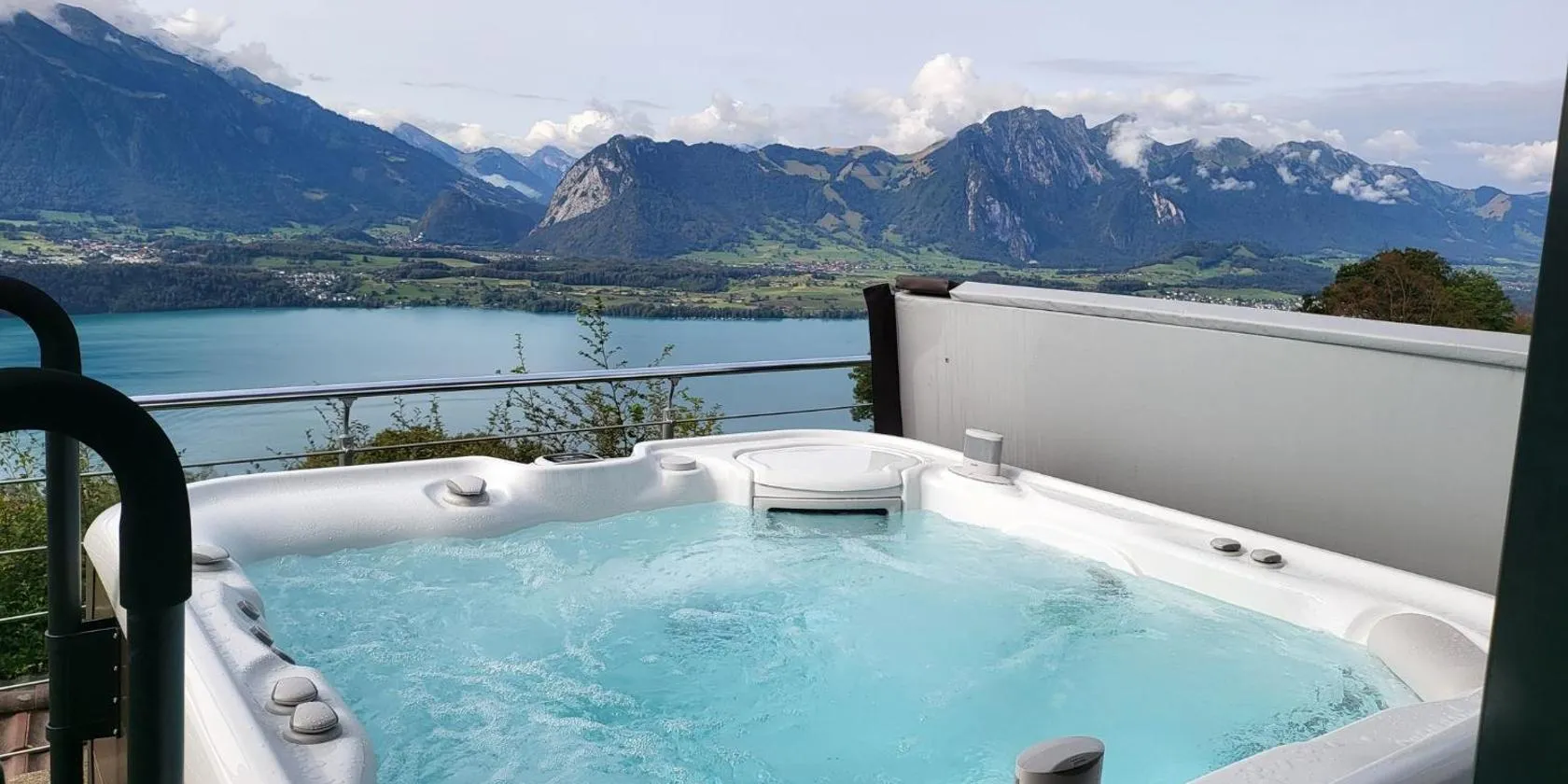 Genießen Sie den Blick auf die schönste Bucht Europas und die Berge der Jungfrau-Region während Ihres Aufenthalt im Eden Spiez.