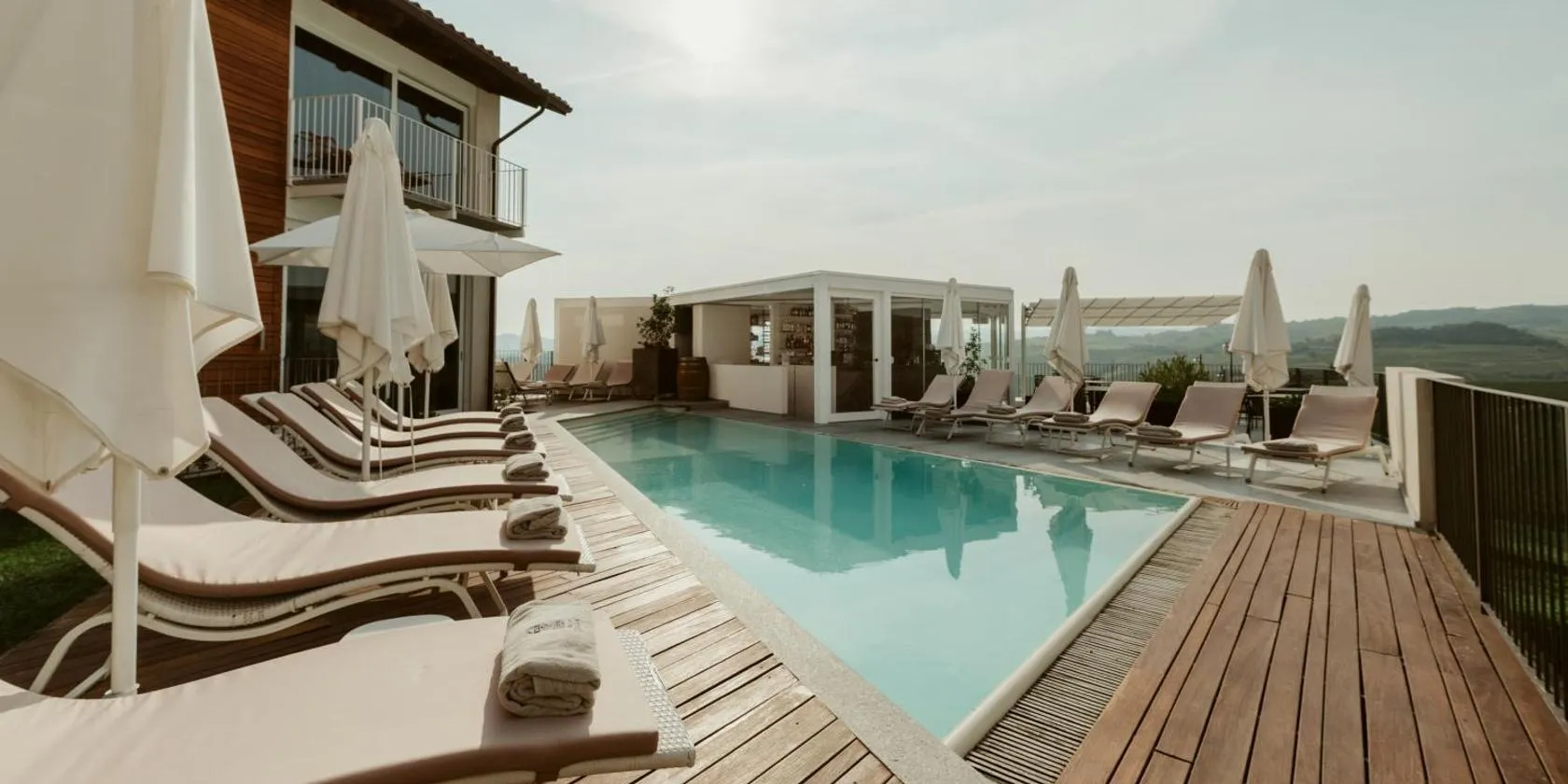 Il Boscareto Resort & Spa offers beautiful views across the Langhe vineyards.