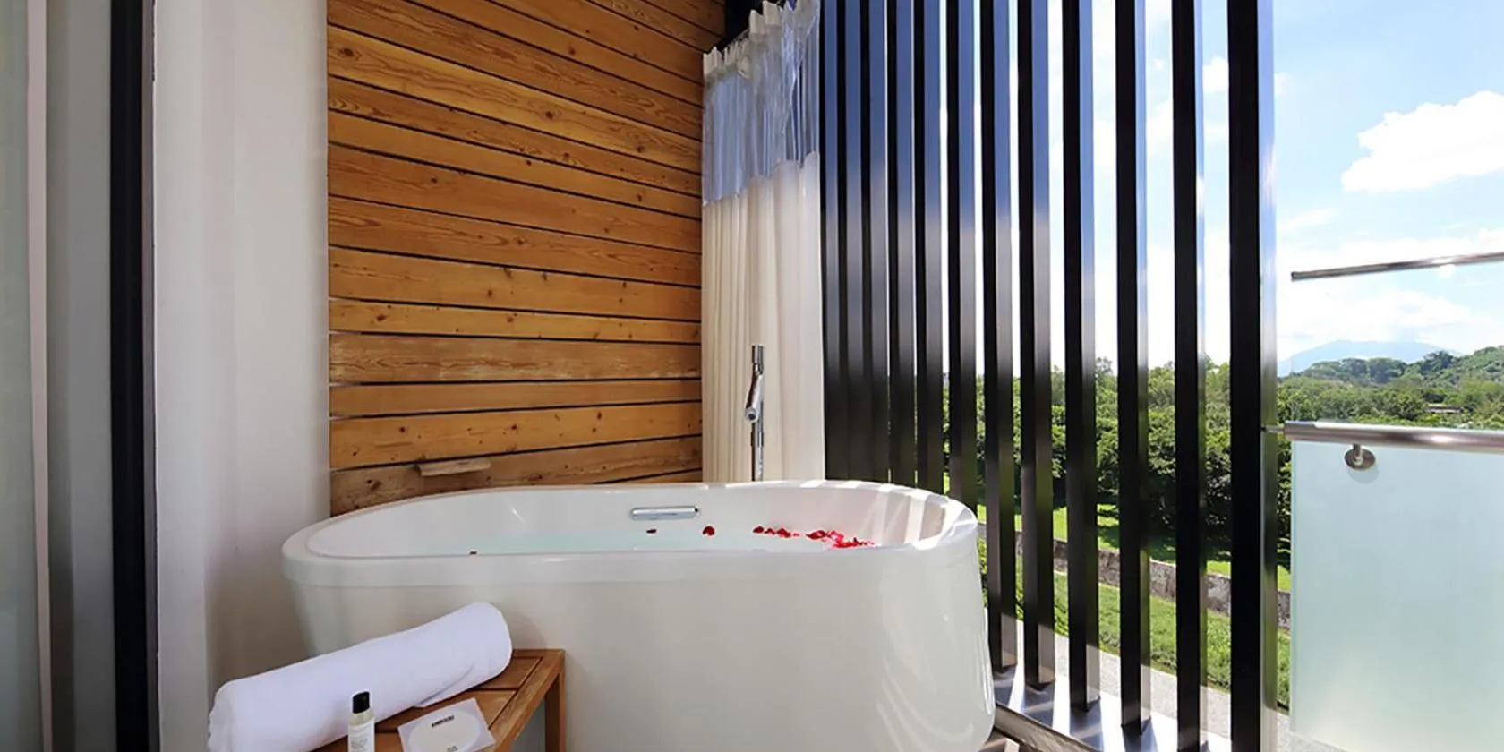This tropical hotel provides luxurious themed suites with free WiFi.