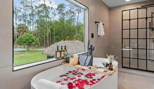 Для зручності гостей помешкання Velvet Bloom - Bubbling Spa Retreat with Sauna & Jacuzzi, що розміщено в місті Нейплс, за 14 хв. ходьби від пам'ятки "Naples Botanical Garden", патіо, сад та...