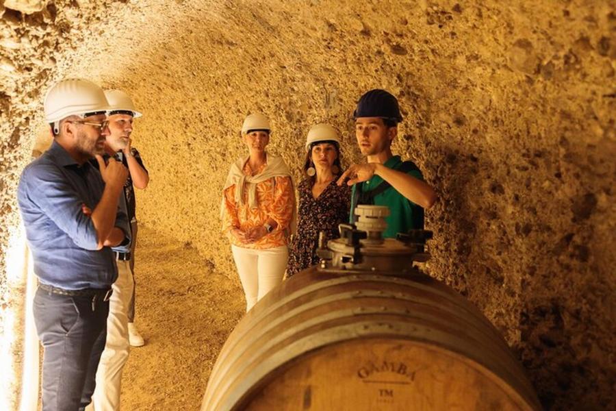 Prohlídka elektrokol s průvodcem a ochutnávkou jídla a vína.