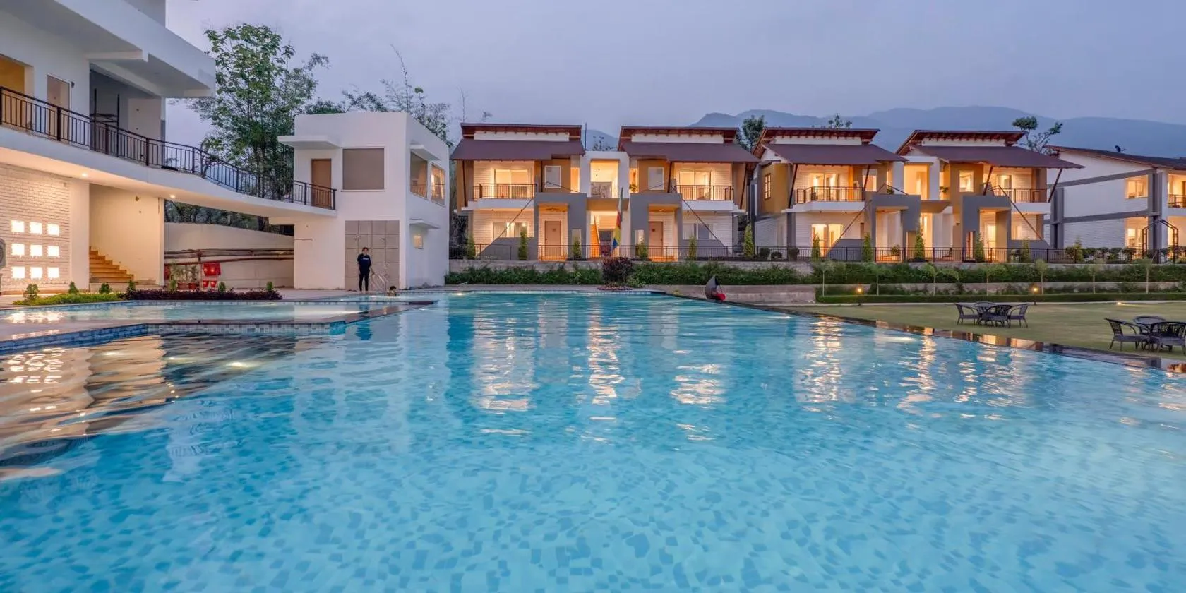 Die Unterkunft Corbett Calling with Projector Set-Up by StayVista verfügt über einen Außenpool in Rāmnagar und besticht außerdem mit kostenlosem WLAN und einem kostenlosen Privatparkplatz für Gäste,...