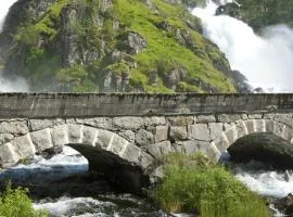 Situated just 7 km from Røldal Stave Church, Cabin in Valldalen, Røldal features accommodation in Røldal with access to a garden, a shared lounge, as well as a shared kitchen.