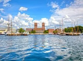 Fjord: oslo ligger i Nordstrand og har en hage, et privat strandområde og en terrasse i tillegg til gratis WiFi og utsikt over sjøen.